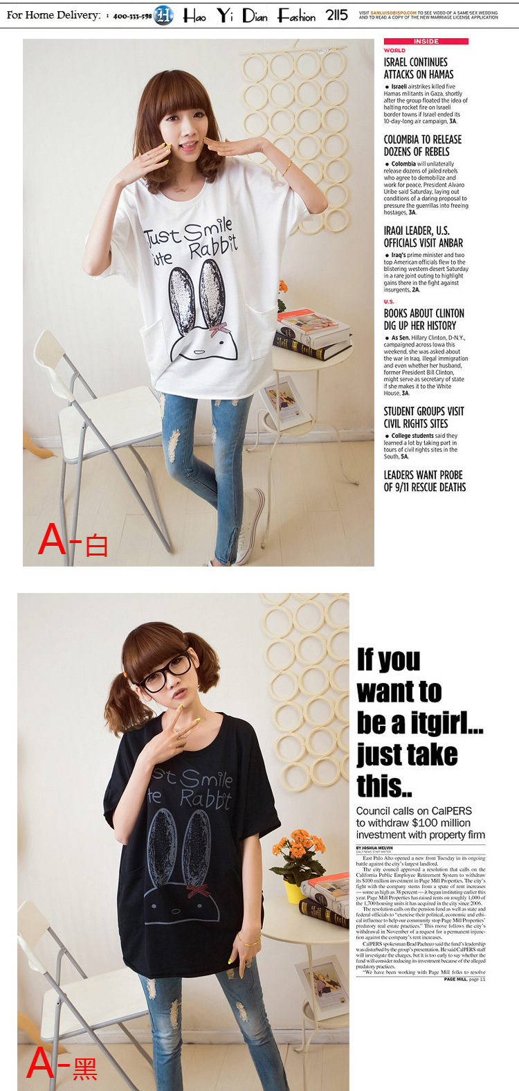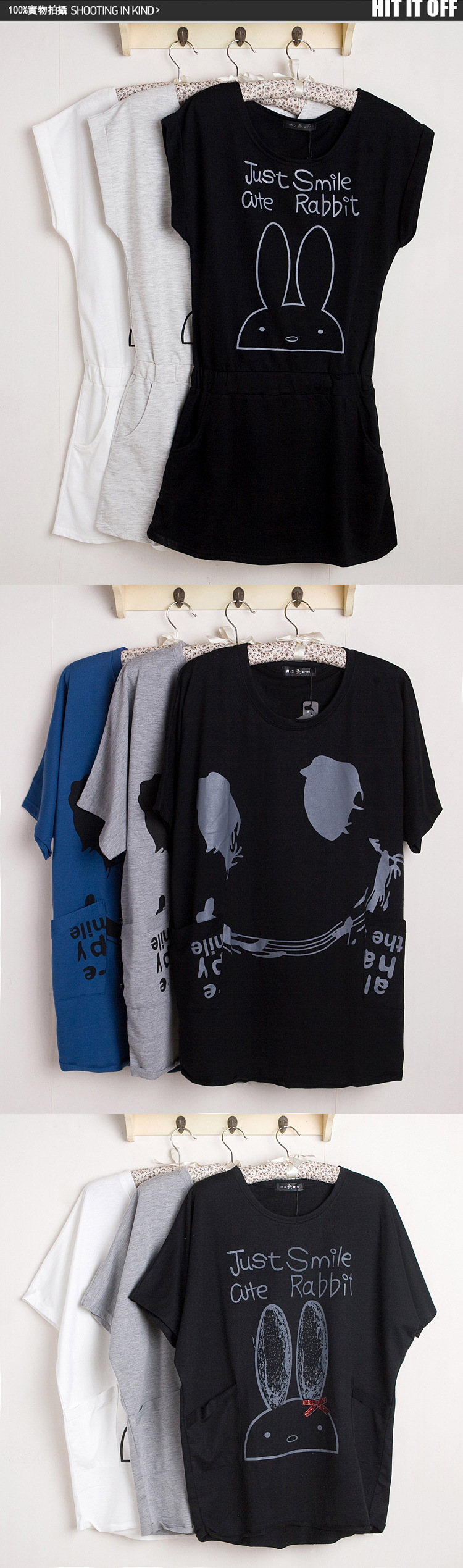 823-827#(模特实拍)2013品质宽松休闲卡通印花袖连衣裙
