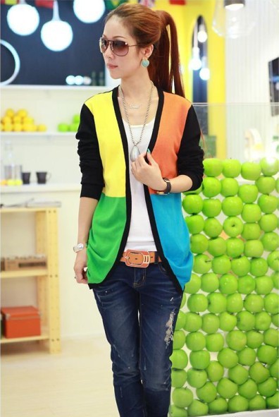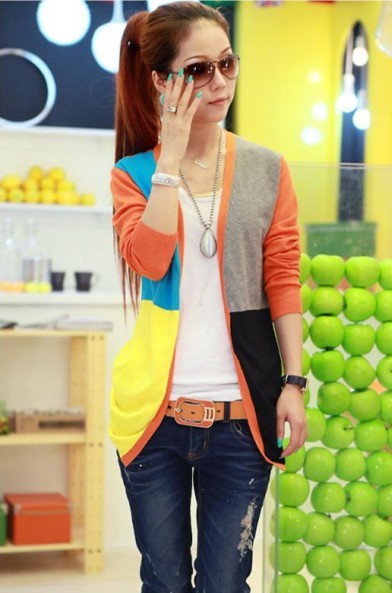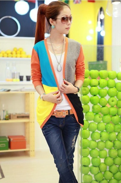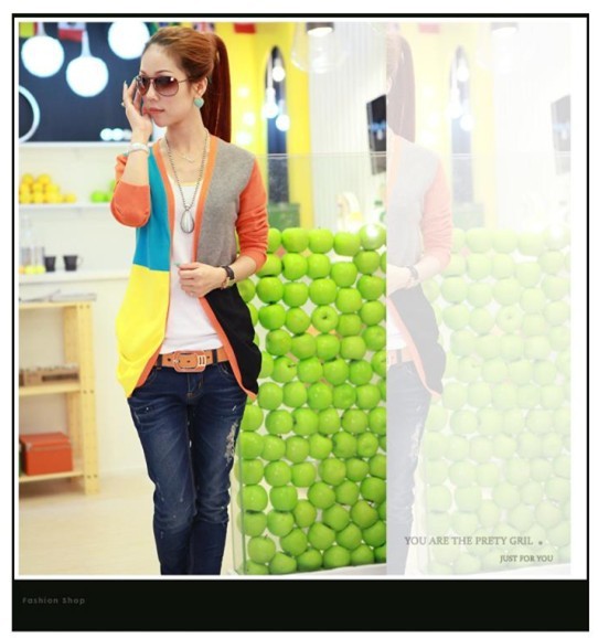 2013新款针织衫开衫5色拼接