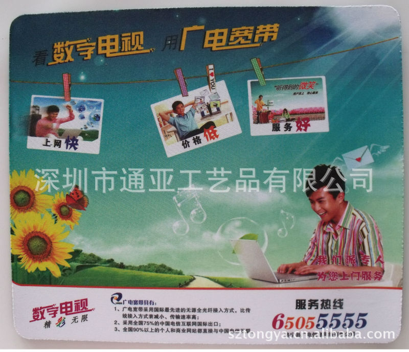 鼠标垫以其精美小巧的外型和方便实用的功能赢得了众多电子、网络、电器及食品厂商的青睐,成为企业广告宣传的一种重要形式。其有着价格便宜,印刷精美,广告幅面大,宣传作用强的特点。