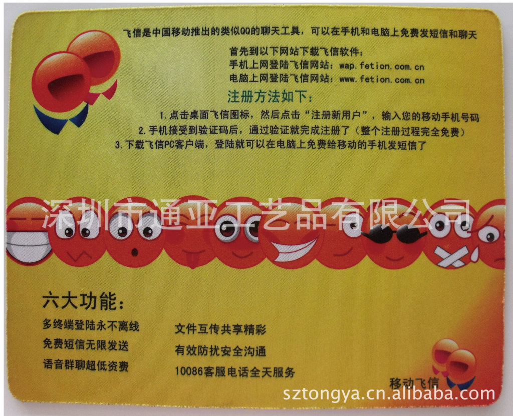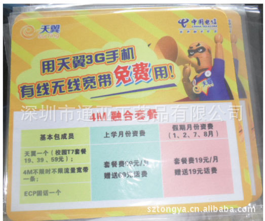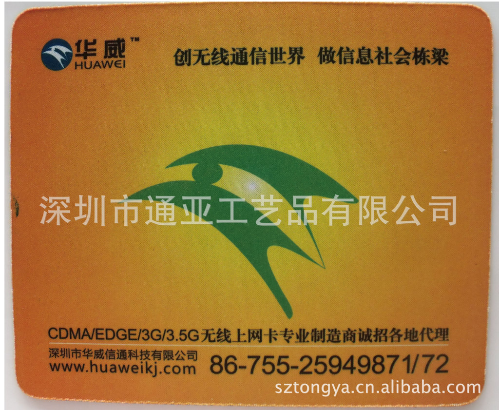 深圳市通亚工艺品有限公司是一家集自主研发,生产与销售为一体的综合性礼品公司。多年来我们致力于促销产品的深层开发,不断推出独特的系列产品:鼠标垫、桌垫、手机擦、电脑擦、磁性冰箱贴、钥匙扣、PVC电压包装袋、PP/PVC透明包装、手提袋等几十个系列,我们拥有实力雄厚的研发队伍。旗下设置一批先进设备:UV彩印机、丝网印刷、转印机、高周机、超声波机、切纸机等配套设备。
