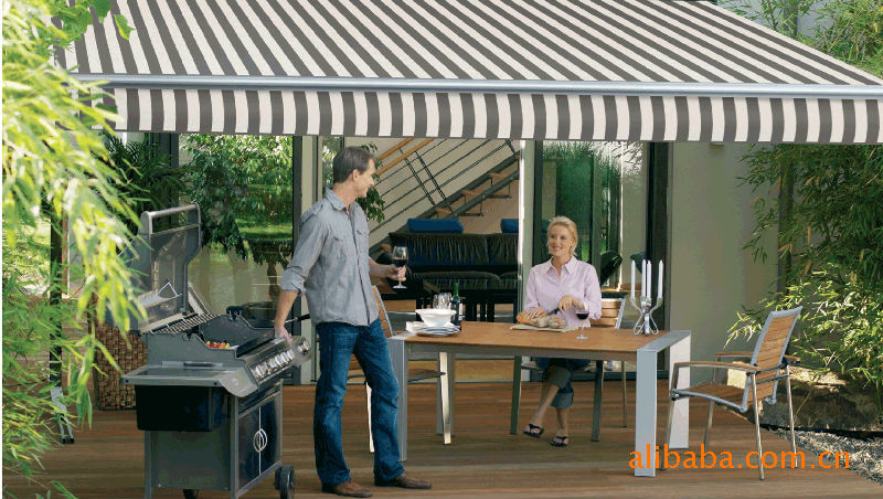 此篷为卷轴,篷布及整个手臂系统提供的保护--当遮阳篷收回时,所有机构均被收进罩壳内将恶劣的天气、大风、大雪及各类污垢隔断开来,使遮阳篷历久如新。外貌特征:前檐无垂边,收起如椭圆型的盒子,收放须配管状电机,手按开关收缩、智能电子遥控均可。 特 点:质量高、铝材用量最多。 布 料:配高档的遮阳布. 抗撕裂,防霉防蛀,5年色度 保证。 试用规格:6m×3m<2m×1.5m