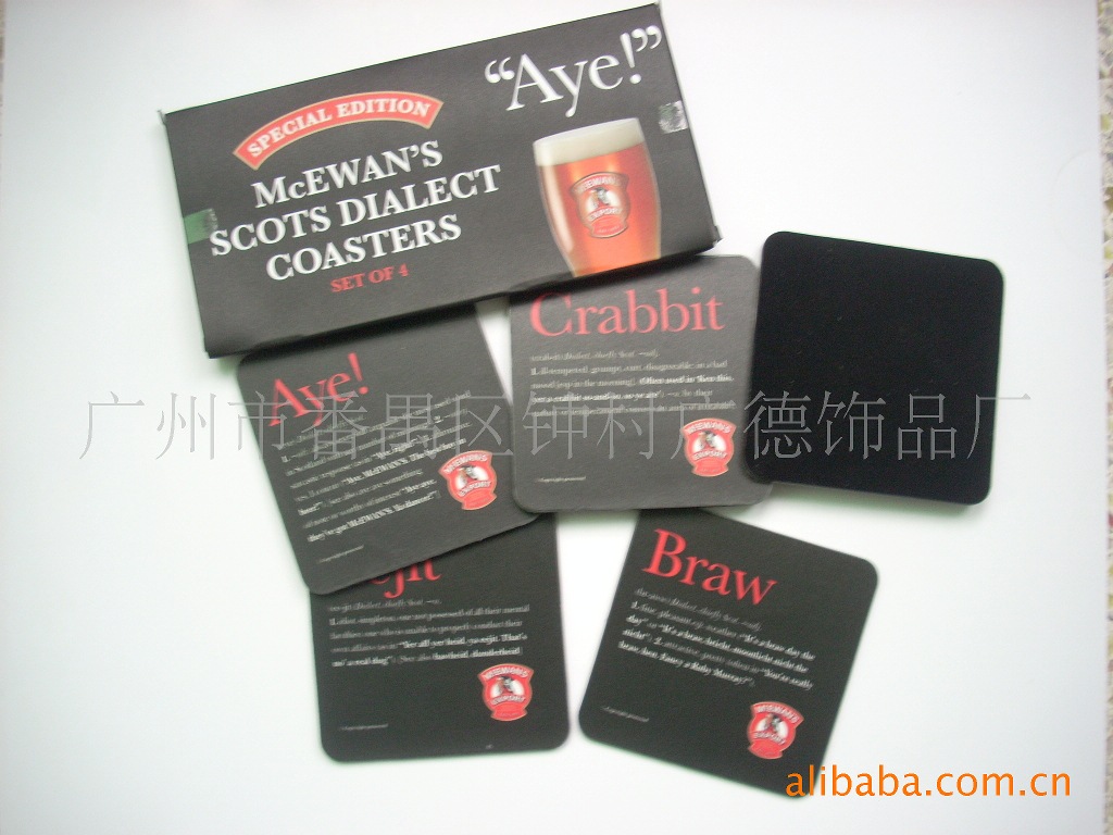 6、杯垫制品类:木头杯垫、灰板纸杯垫、PVC软胶杯垫、橡胶杯垫、EVA杯垫、真皮杯垫等系类杯垫套