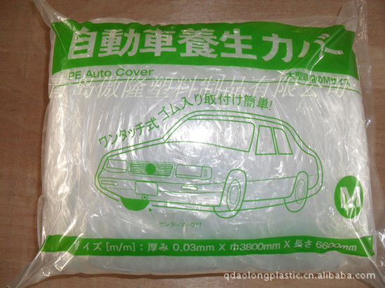 产品 说明 | 一次性车衣是由聚乙烯塑料材料(LLDPE)制作而成。主要用来防尘,防污染,防雨雪霜降。携带方便,多用于车辆的仓储存放,露天存放,以及高污染环境中的车辆存放等