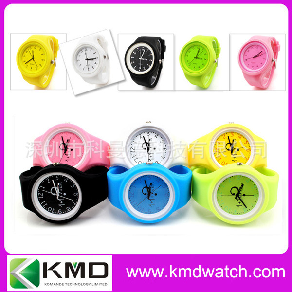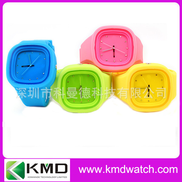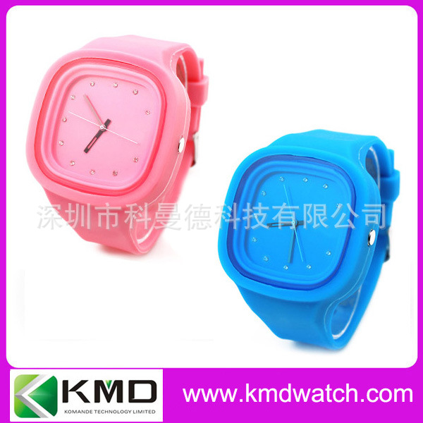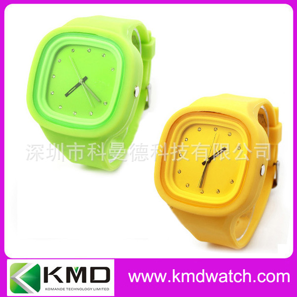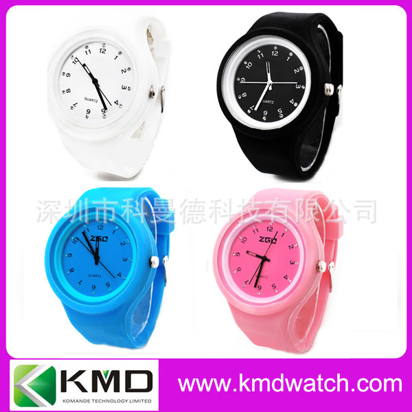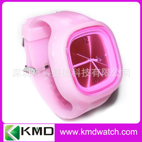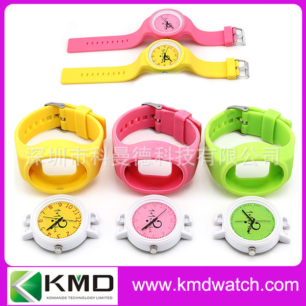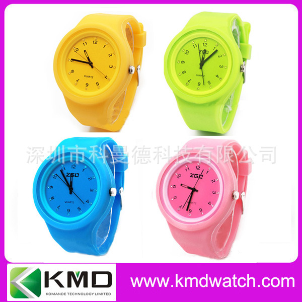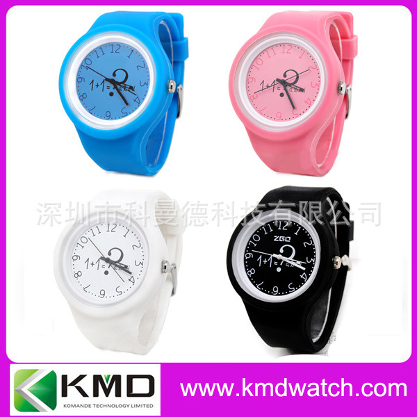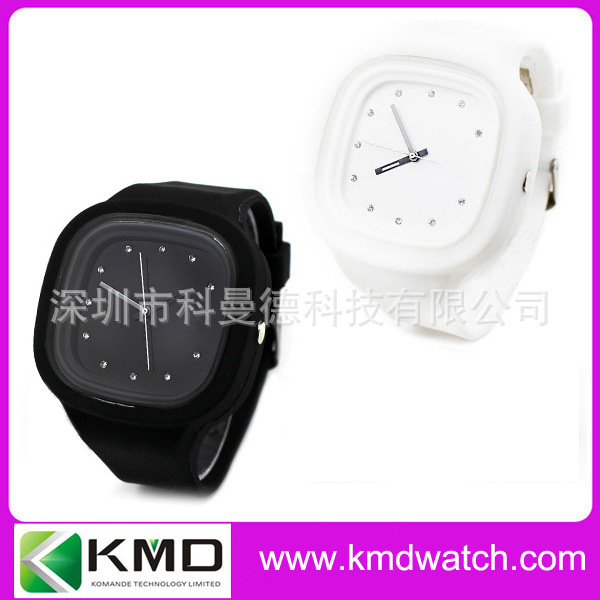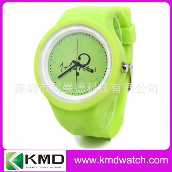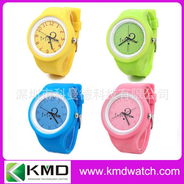 科曼德手表厂生产圆形塑料壳硅胶带手表 白色彩色时尚表 国产机芯: