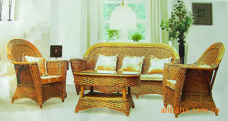 藤制的客厅家具是藤艺家具中最为完美、最具风格的。一套漂亮舒适的、用藤芯编成的客厅家具,柔和、细腻、流畅,造型和色彩上力求古朴,尽显工艺美;餐厅家具则讲究构造与色彩的搭配,用粗藤制的椅、桌富有时代气息,给人的感觉是结实而圆润,移动也十分方便;书房家具则往往造型美观清新,配有软垫的藤座椅,使用舒适,与简易小书架、落地书框配套,十分和谐协调。