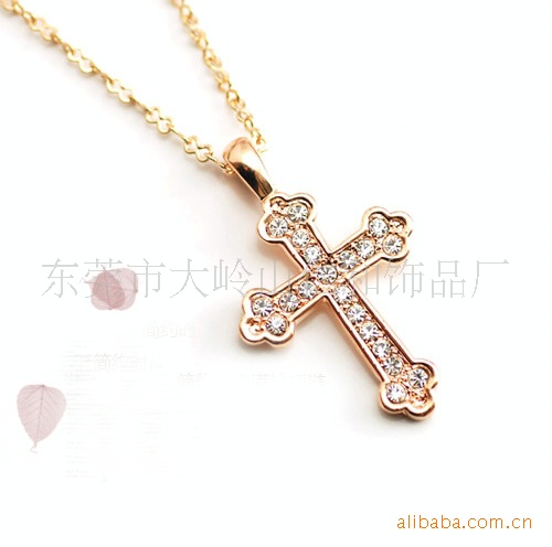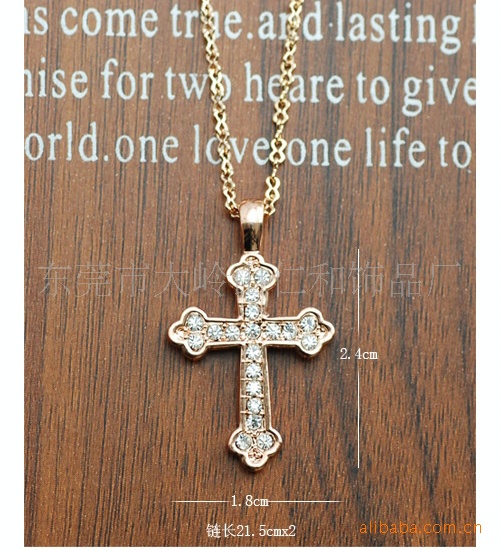 这款十字架吊坠项链产品精美时尚,电镀铬色,符合环保要求(环保电镀),有多种水钻颜色供您选择。可按您的要求订做!