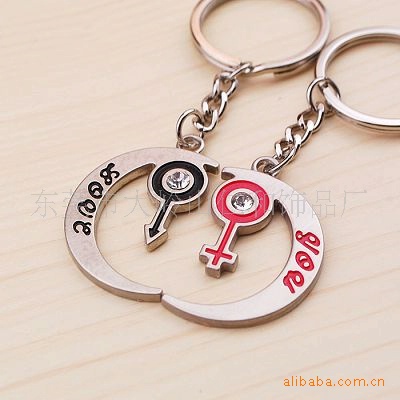这款情侣匙扣产品时尚大方,有多种滴油颜色和水钻颜色供您选择,电镀铬色,符合环保要求,可按您的要求订做!