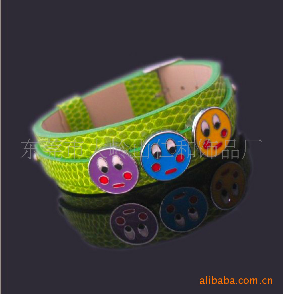 工艺:磨光 挂铬 滴油 装配 这款俏皮可爱的QQ笑脸表情PU手带产品精美时尚,电镀铬色,符合环保要求(环保电镀),有多种滴油颜色供您选择。可按您的要求订做!