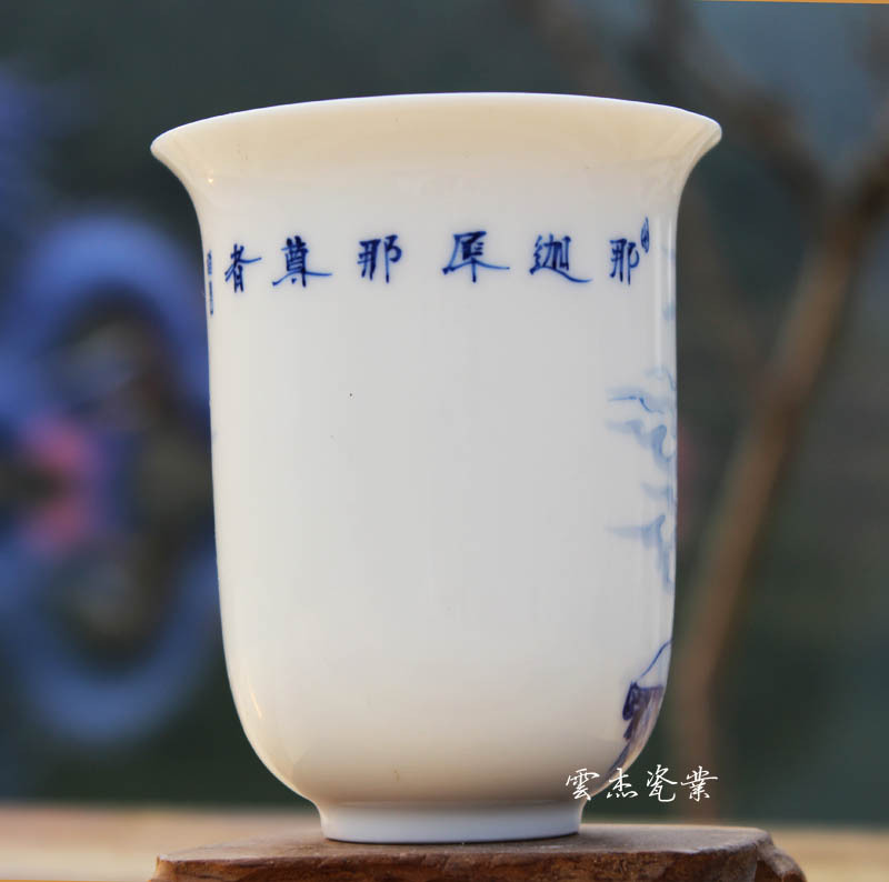 景德镇陶瓷手绘高档青花十八罗汉单杯 精品手绘单杯