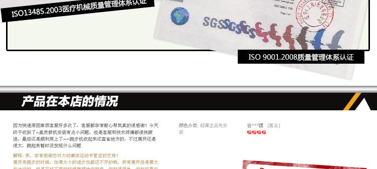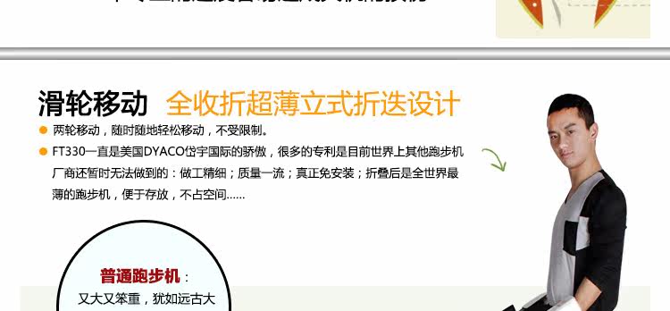 顾客评价: 之前跑步机不能展开,客服很快就有回复,售后是好的。 但是有些问题不能解决,例如心率计完全不能用,永远是60多至70多之间,卖家虽然说这个不能医用,但是连参考的价值都没有,要来何用,多一个功能就增加一种坏的可能,设备的成本也增加了! 06.08 Dyaco美国岱宇跑步机FT330家用电动折叠静音超薄免安装 :超薄正品免安装 p***n(匿名) 跑步机不错。 卖家服务周到! 06.04 Dyaco美国岱宇跑步机FT330家用电动折叠静音超薄免安装 :超薄正品免安装 t***1(匿名) 速度很快,周五下单周日就到了。东西不错,用起来方便,就是跑道有点窄。空运行声音比较小。 06.03 Dyaco美国岱宇跑步机FT330家用电动折叠静音超薄免安装 :超薄正品免安装 y***e(匿名) 质量和外观都不错! 05.28 Dyaco美国岱宇跑步机FT330家用电动折叠静音超薄免安装 :超薄正品免安装 z***2(匿名) 基本满意,但跑步机有一个喇叭没有声音,联系过客服,还未及时回复解决的办法。 05.27 7天后追加:比较好用,售后也及时寄来了配件,谢谢。 Dyaco美国岱宇跑步机FT330家用电动折叠静音超薄免安装 :超薄正品免安装 ffshirley 挺好!快递服务挺好,和保安一起送上楼的。 05.24 Dyaco美国岱宇跑步机FT330家用电动折叠静音超薄免安装 :超薄正品免安装 雪***车(匿名) 大小正合适家用,白色的很漂亮,声音也不大,跑起来挺舒服的。缺点是加减速的按键不灵敏,我很怀疑很快就会被我破坏了。 05.23 Dyaco美国岱宇跑步机FT330家用电动折叠静音超薄免安装 :超薄正品免安装 qlh7618955 总体来都还可以吧,收折方便。不错 05.22 Dyaco美国岱宇跑步机FT330家用电动折叠静音超薄免安装 :超薄正品免安装 s***u(匿名) 卖家人特别的好。东西也不错。 05.22 Dyaco美国岱宇跑步机FT330家用电动折叠静音超薄免安装 :超薄正品免安装 猴***妖(匿名) 质量一般!物流超级不给力,星期5就到了,星期3才送货!不是一般的郁闷!之后联系客服说跑带有点偏,跑起来重心不平衡,心率不准等问题,反馈给客服之后,客服说叫售后联系我,NND两个星期都不联系!到现在一直没联系!第一次在淘宝上买那么贵的东西,挺失望的!想着那么重的东西要扛下来退货麻烦就没退了,将就着用吧! 解释:亲,非常感谢您对力动康体运动专营店的支持! 对于您提出的问题在此给您解答一下,我们所卖的产品在同价位同功能,同一品牌档次的产品里面质量、价格已经是最经济实惠的了,手握心率都是参考作用,并不是非常准确的,即使几万十几万的跑步机,手握心率测试功能也只能做参考作用,您可以找其他品牌的跑步机测试一下。您在健身房工作过应该也是比较熟悉健身器材的。跑带偏都是可以调节的,也属正常现象,100%所有跑步机都会发生这个状况,很简单拧几下就能解决,我们的售后师傅也会教您,我们也电话联系过您,但是您可能没接或者关机,所以以为一直未联系,我们这边已安排再次与您联系,由于健身器材一般较重,像这款有58公斤,跨省份的快递速度一般要2-5天左右到货,再加上各物流点派送人员不同,所以服务难以统一,相信现在各物流快递公司都存在此问题,还望见谅。 祝您身体健康,生活愉快! 力动康体--华南第一健身器材商城! 热线电话:400-800-0808转800445。 05.22 Dyaco美国岱宇跑步机FT330家用电动折叠静音超薄免安装 :超薄正品免安装 曼***2(匿名) 有点意思 05.20 Dyaco美国岱宇跑步机FT330家用电动折叠静音超薄免安装 :超薄正品免安装 mccck 满意 05.20 Dyaco美国岱宇跑步机FT330家用电动折叠静音超薄免安装 :超薄正品免安装 chenchuan6603 比较简洁,容易操作,从天津库房发货比较快,师傅和我抬到五楼,很不错,只是没给正式发票。 解释:亲,非常感谢您对力动康体运动专营店的支持! 发票是做报销用途,保修并不需要,本店可免费提供发票,正规机打普通增值税发票。如需发票的买家请在下单时,在给卖家的留言里写清楚发票抬头,以及发票内容,发票金额指商品价格,不包括运费.不说明发票抬头等我们是开不了发票的。这个在我们发票说明上有说。 如您需要发票,可联系我们在线客服人员补开。发票及运费由我们商家承担。我们开好发票后发韵达/优速快递给您。快递不到的地方发挂号信。 祝您身体健康,生活愉快! 力动康体--华南第一健身器材商城! 热线电话:400-800-0808转800445。 05.18 Dyaco美国岱宇跑步机FT330家用电动折叠静音超薄免安装 :超薄正品免安装 x***4(匿名) 安装很方便,不过真的好大只,比想象中大了一大圈,不过跑起来声音挺小的,总的来说还是比较满意,客服态度也很好 05.18 Dyaco美国岱宇跑步机FT330家用电动折叠静音超薄免安装 :超薄正品免安装 h***j(匿名) 用了两次,感觉不错。 05.17 Dyaco美国岱宇跑步机FT330家用电动折叠静音超薄免安装 :超薄正品免安装 c***v(匿名) 机子不错,物流也很快,第二天就收到了,还帮忙搬上楼。 05.16 Dyaco美国岱宇跑步机FT330家用电动折叠静音超薄免安装 :超薄正品免安装 k***4(匿名) 用了几天了 机器只听到皮带的沙沙声电机声音很小 但是人在上面跑动的声音还是不可避免的 所以亲们不要对静音两字抱有幻想啊 机器装起来超简单 易折叠 省心 还有音箱 边听歌边跑会觉得时间过得快点哈哈物流门对门 送到楼下 服务很不错 就是机器超重啊 非专业人士搬起来很吃力的 05.16 Dyaco美国岱宇跑步机FT330家用电动折叠静音超薄免安装 :超薄正品免安装 z***9(匿名) 客服很好,就是绍兴