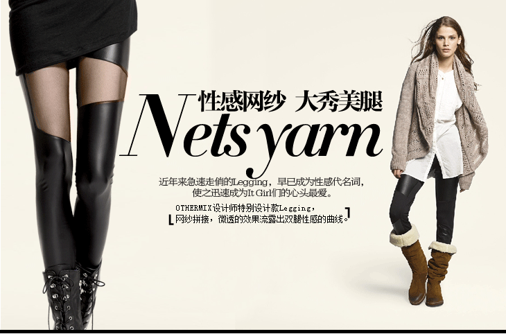 品名 | 2013春秋款打底裤 时尚个性显瘦网纱仿皮拼接 九分韩版批发 | 货存情况 | 有货 |