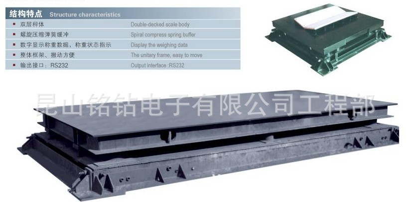 特点介绍 *该秤采用双层称体,设置螺旋压缩弹簧吸收加载时的冲击量,配套高精度称重传感器和智能化称重显示仪表。