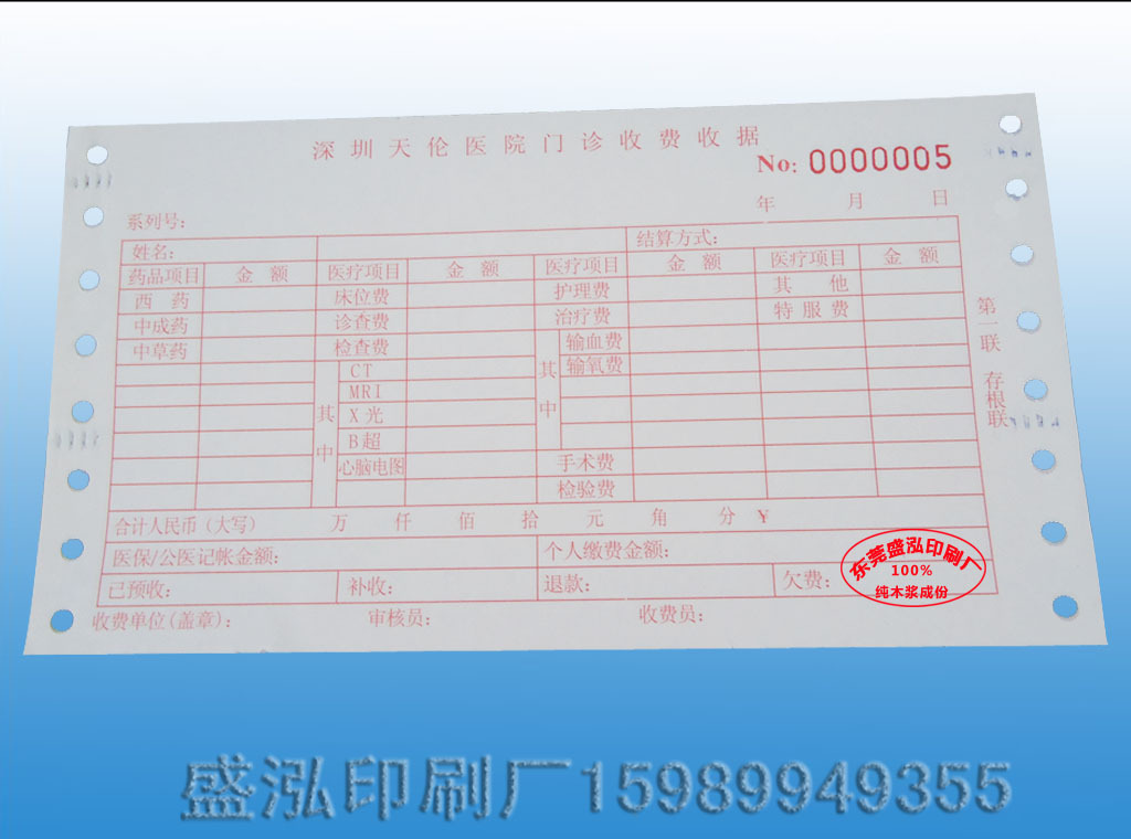 东莞广东省医疗机构门诊收费收据无碳复写联单印刷广东省疗收费专用收款收据表格印刷专业印刷医疗收费表格单印刷