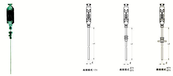 扁接插式铠装热电偶(绝缘式)选型一览表 | 产品名称 | 产 品 型 号 | 分 度 号 | 温度范围 ℃ | 安装固定装置 | | 铂铑10-铂 | WRPK-171 WRPK2-171 | S | 0-1300 | 无固定装置 | | 镍铬硅-镍硅 | WRMK-171 WRMK2-171 | N | 0-1100 | | 镍铬-镍硅 | WRNK-171 WRNK2-171 | K | | 镍铬-铜镍 | WREK-171 WREK2-171 | E | 0-600 | | 铜-铜镍 | WRCK-171 WRCK2-171 | T | 0-350 | | 铁-铜镍 | WRFK-171 WRFK2-171 | J | 0-500 | | 铂铑10-铂 | WRPK-271 WRPK2-271 | S | 0-1300 | 固定卡套螺纹 | | 镍铬硅-镍硅 | WRMK-271 WRMK2-271 | N | 0-1100 | | 镍铬-镍硅 | WRNK-271 WRNK2-271 | K | | 镍铬-铜镍 | WREK-271 WREK2-271 | E | 0-600 | | 铜-铜镍 | WRCK-271 WRCK2-271 | T | 0-350 | | 铁-铜镍 | WRFK-271 WRFK2-271 | J | 0-500 | | 铂铑10-铂 | WRPK-371 WRPK2-371 | S | 0-1300 | 活动卡套螺纹 | | 镍铬硅-镍硅 | WRMK-371 WRMK2-371 | N | 0-1100 | | 镍铬-镍硅 | WRNK-371 WRNK2-371 | K | | 镍铬-铜镍 | WREK-371 WREK2-371 | E | 0-600 | | 铜-铜镍 | WRCK-371 WRCK2-371 | T | 0-350 | | 铁-铜镍 | WRFK-371 WRFK2-371 | J | 0-500 | | 铂铑10-铂 | WRPK-471 WRPK2-471 | S | 0-1300 | 固定卡套法兰 | | 镍铬硅-镍硅 | WRMK-471 WRMK2-471 | N | 0-1100 | | 镍铬-镍硅 | WRNK-471 WRNK2-471 | K | | 镍铬-铜镍 | WREK-471 WREK2-471 | E | 0-600 | | 铜-铜镍 | WRCK-471 WRCK2-471 | T | 0-350 | | 铁-铜镍 | WRFK-471 WRFK2-471 | J | 0-500 | | 铂铑10-铂 | WRPK-571 WRPK2-571 | S | 0-1300 | 活动卡套法兰 | | 镍铬硅-镍硅 | WRMK-571 WRMK2-571 | N | 0-1100 | | 镍铬-镍硅 | WRNK-571 WRNK2-571 | K | | 镍铬-铜镍 | WREK-571 WREK2-571 | E | 0-600 | | 铜-铜镍 | WRCK-571 WRCK2-571 | T | 0-350 | | 铁-铜镍 | WRFK-571 WRFK2-571 | J | 0-500 | 1)热电偶I级按协议订货; 2)保护管其余材质根据协议订。