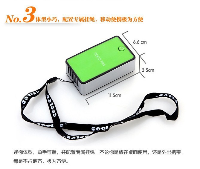 遍观市场上的迷你风扇,均是采用5号或7号电池供电。不但装拆不便,而且电池电量有限,使用一天下来不知道要购买多少电池,实在是得不偿失。本品在业界率先使用环保充电锂电池,大容量,持续工作。使用本品赠送的USB充电线,充电方便快捷,为您省去后买电池大量花销。环保锂电池,可反复充电500次以上,寿命长达3年。