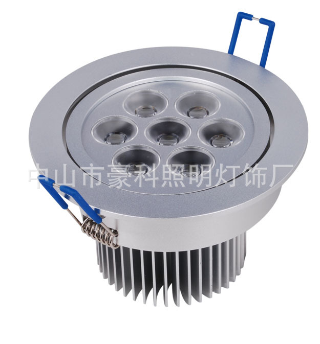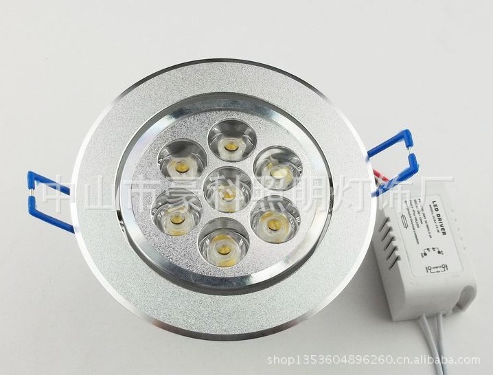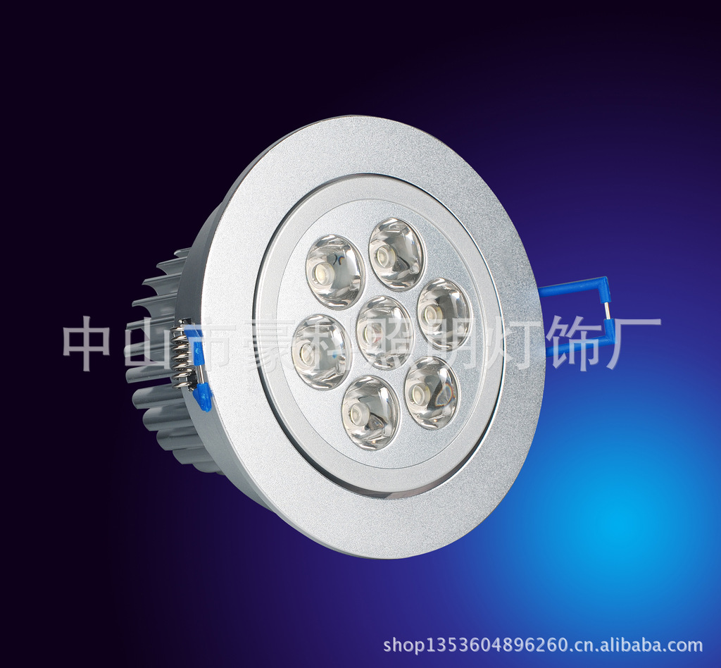材质:全部采用高纯度车铝铝合金灯体,表面氧化处理光色可选:红.黄.蓝.绿.白.暖白射程距离大于6米电压:AC85~265V功率:7W光通量:630-700LM色温:暖白2700-3500K,中性白4000-4500K, 正白5500-6500K单颗LED功率:1W/320MA可选透镜:5度,8度,15度,25度,30度,45度,60度,90度,120度环境温度:-35度~45度控制方式:外置恒流驱动器色彩效果:单色乏光/投光寿命大于5万小时质保:3年此产品适合于商店展示窗.饭店.餐厅.室内装饰照明.展厅.艺术厅.博物馆.办公室.阅览室.酒吧.酒柜.的士高.卡拉OK等照明产品特性: 1、产品采用超高亮台湾晶元芯片LED灯珠光源,用深圳封装技术生产,内置恒流驱动电源、铝基板,确保灯具性能稳定。节能省电、不发热、寿命长、能耗低、绿色环保等。可以根据客户的要求或者指定芯片(CREE)生产加工。 2、产品LED光源,色彩鲜亮,色泽纯正,有白色、暖白等,可按客户要求搭配颜色。3、电压宽频率输入无频闪,瞬态响应快(无延时)无频繁开关损坏现象,非常适合开关次数频繁、电压波动范围大的场合。4、高效恒流驱动电源,在相同条件下,5W LED球泡灯相当于40-50W节能灯的亮度,省电率高达75-80%。LED大功率的使用寿命长达50000小时以上,是普通白炽灯寿命的20倍以上,且3000小时衰减<3%,40000小时衰减<30%。避免了经常更换射灯,减少了维护管理费用。 5、灯体材质采用铝材压铸工艺,表面经氧化或电镀处理。独特的内部通气散热结构设计,产品重量轻、散热好、外型美观高档。安装方便,节能省电,亮度强,灯泡使用寿命长达5万小时。您永远不用为浪费电和换灯而烦恼!