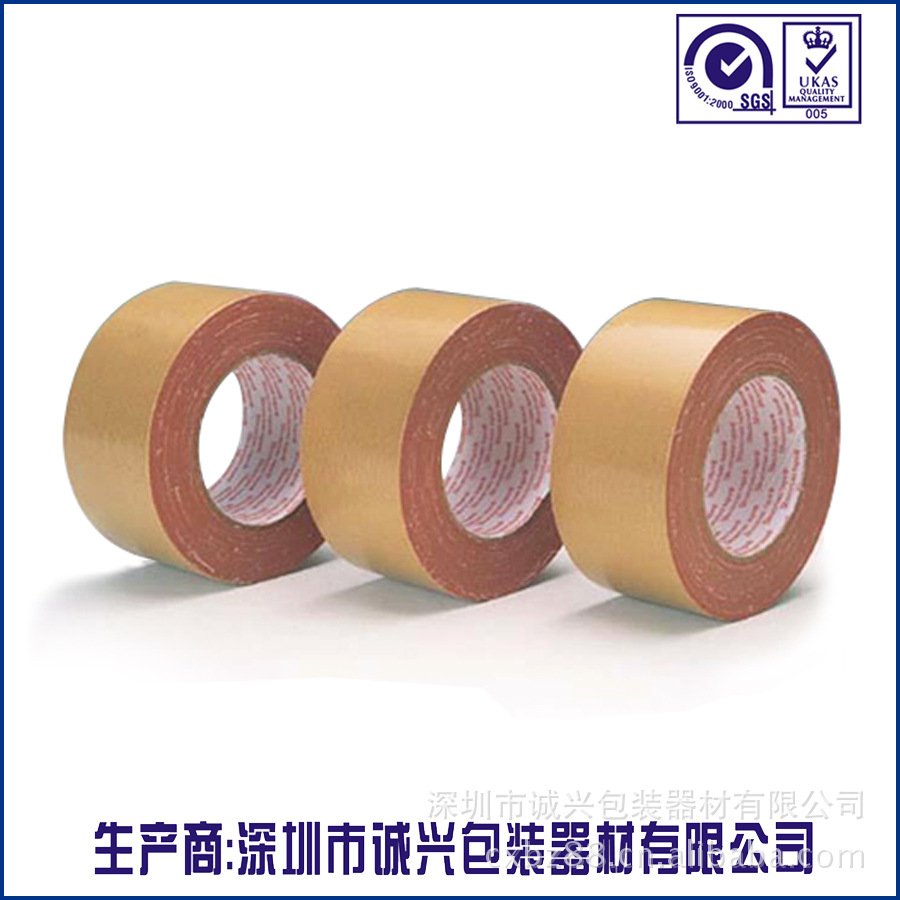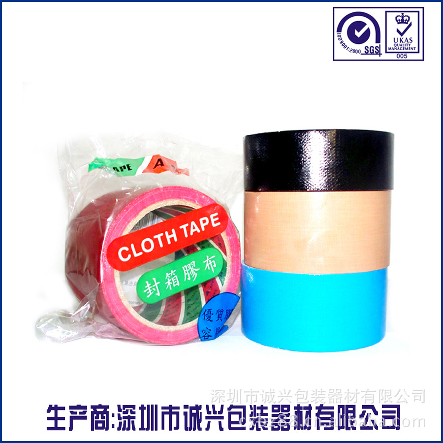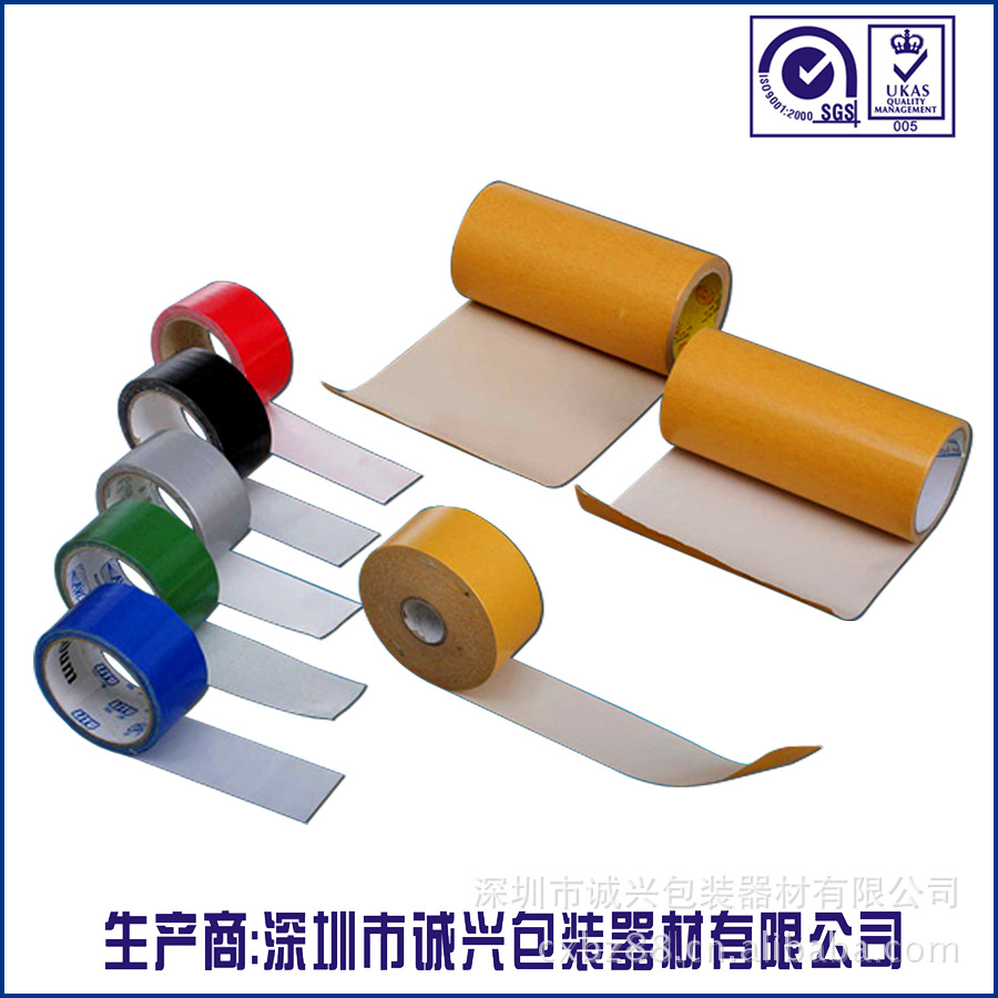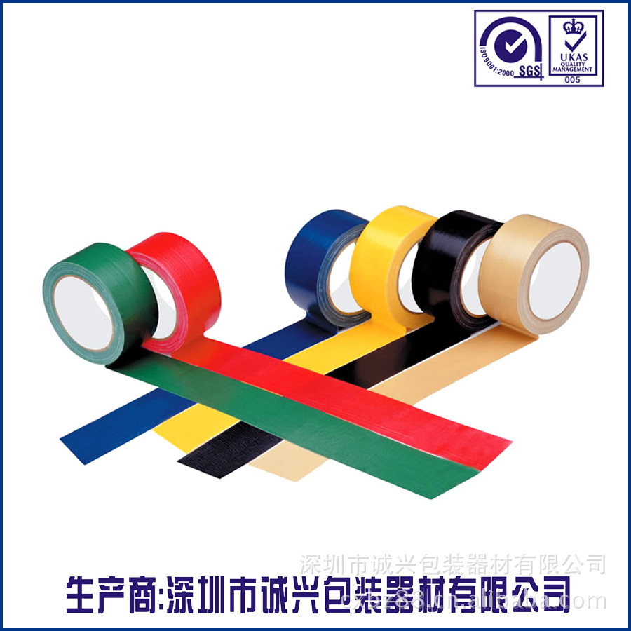 胶系:热熔胶,基材:布基颜色:纯黑、纯绿、银灰、土黄、纯红等 用途:用于地毯接合,工业捆绑,密封保护,丝网印刷,重型包装,五金建筑,装修工程等。特点: ◎高粘接性能、很好的耐久性和耐候性。 ◎有布基有各种颜色,有单双面之分。 ◎抗疲劳性能好、防水、防潮。 ◎易撕裂、切割时不变形、撕去不残胶。