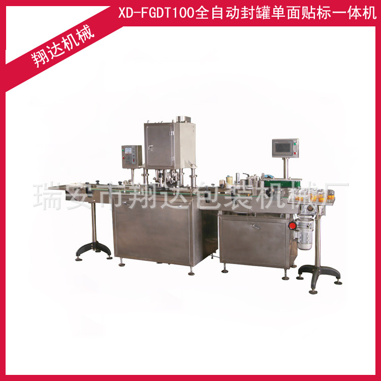 XD-FGDT100型全自动封罐单面贴标一体机: