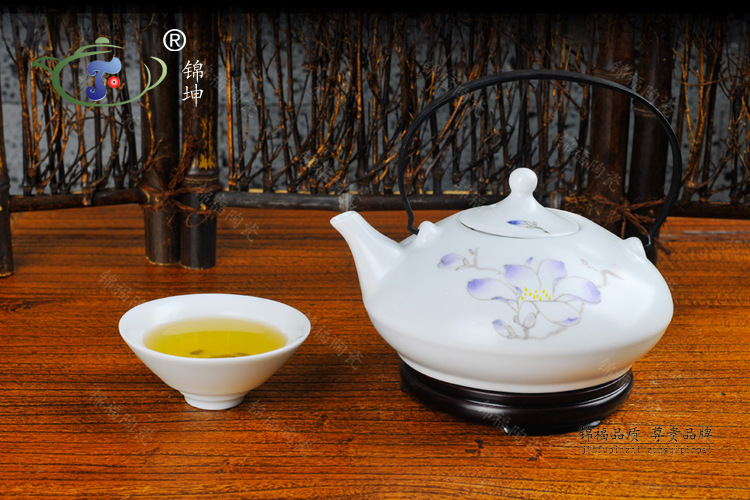 【产品名称】:定窑白手绘玉兰花提梁壶组【产品规格】:提梁壶:9.2*16*5.5*11.2 品茗杯:3.8*口8.8*底2.6 (高x最大直径)【产品容量】:提梁壶:550ml 品茗杯:70ml【产品品牌】:锦坤【产品材质】:1900元/吨高岭土【产品工艺】:5次烧成,高温烧制,手工制作【产品等级】:一级品【产品配置】:提梁壶X1 品茗杯X6【产品包装】:礼盒包装(需其它包装联系业务人员)【产品产地】:福建德化【设计理念】:美雅经典套装,精美礼盒包装,享受人生,享受茶意,馈赠亲朋好友,体现您的独到品味。【使用范围】:品茗泡茶:红茶、绿茶、花茶、普洱、铁观音等【产品备注】:由于照相机、照相环境及电脑显示器的原因会导致图片有些许色差,尺寸均为手工测量难免勿差,一切以实物为准。