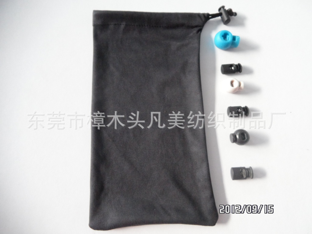 供应个性化超细纤维 黑色 双绳双珠手机袋,眼镜袋,大量现货