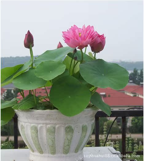四、芽苗移栽:选口径18cm~30cm的无底孔陶盆或塑料花盆,盆内加半盆田园土或无化工污染的河塘泥,提前两周加水浸泡,不要施肥。移栽时将小荷苗的细根按入泥中,每盆栽一株,移栽后加适量水,以水不淹没小荷叶为度。