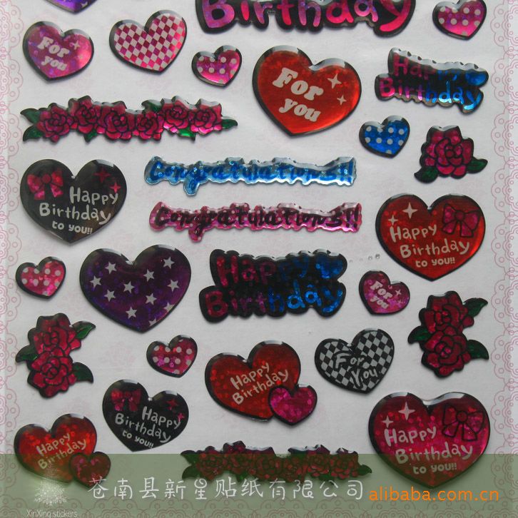 本公司专业设计、生产、销售各种贴纸(水晶贴纸、泡泡贴、指甲贴、纹身贴、组合贴、美容贴、不干胶贴、镭射贴等)。可根据客户的要求印刷图案(LOGO)及广告语或根据客户提供的要求和描述进行设计和生产,并提供打样服务。