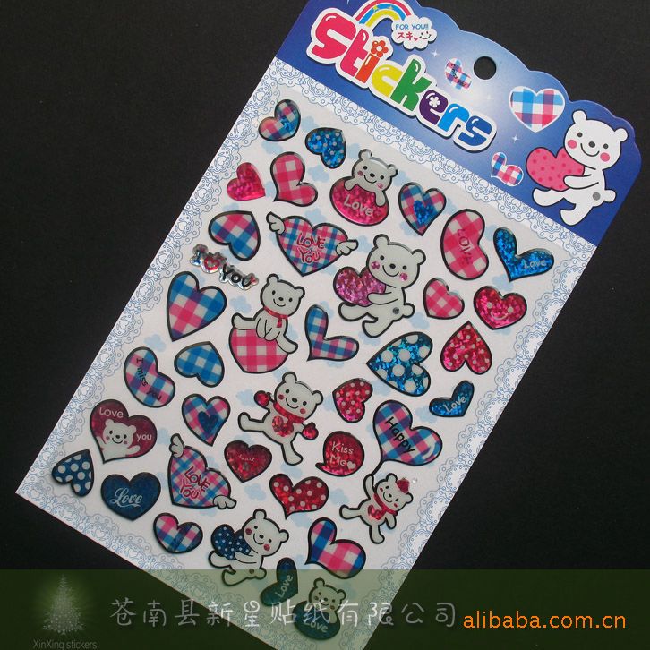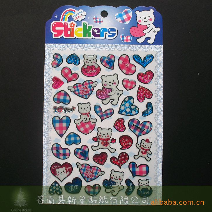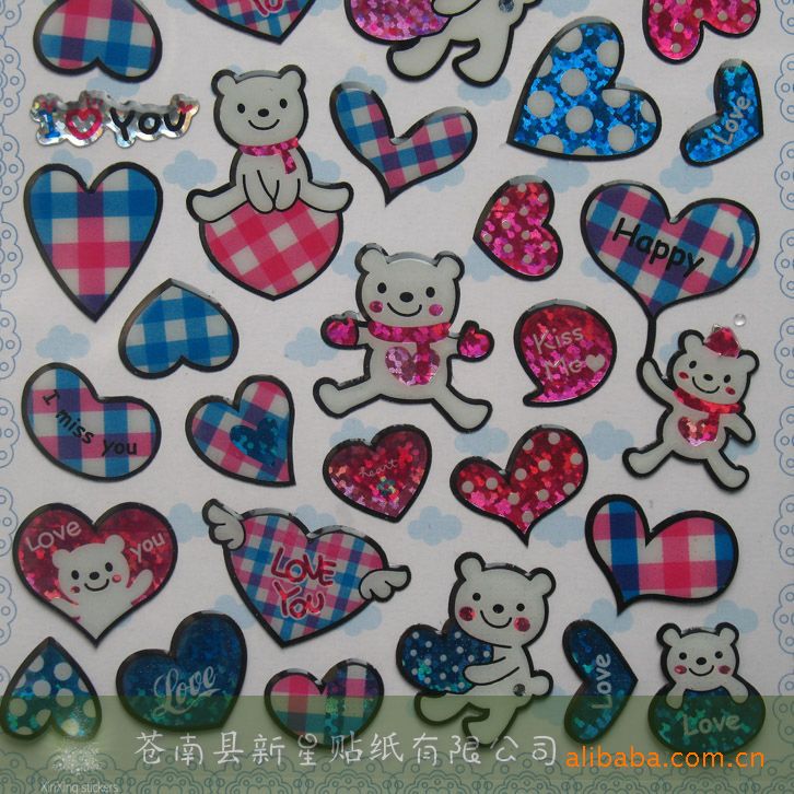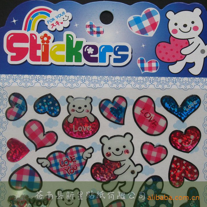 本公司专业设计、生产、销售各种贴纸(水晶贴纸、泡泡贴、指甲贴、纹身贴、组合贴、美容贴、不干胶贴、镭射贴等)。可根据客户的要求印刷图案(LOGO)及广告语或根据客户提供的要求和描述进行设计和生产,并提供打样服务。