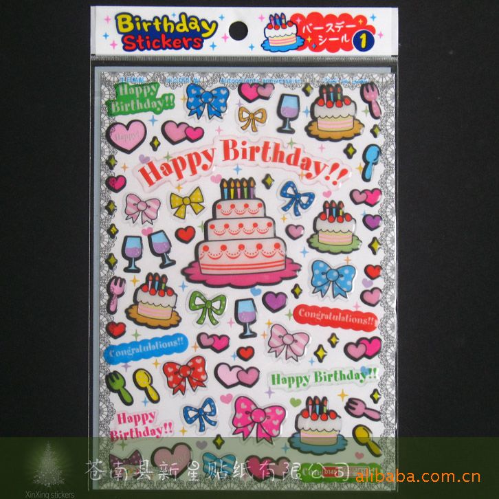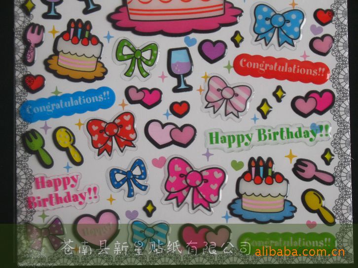 【产品名称】 生日贴纸、创意贴纸、水晶贴纸
