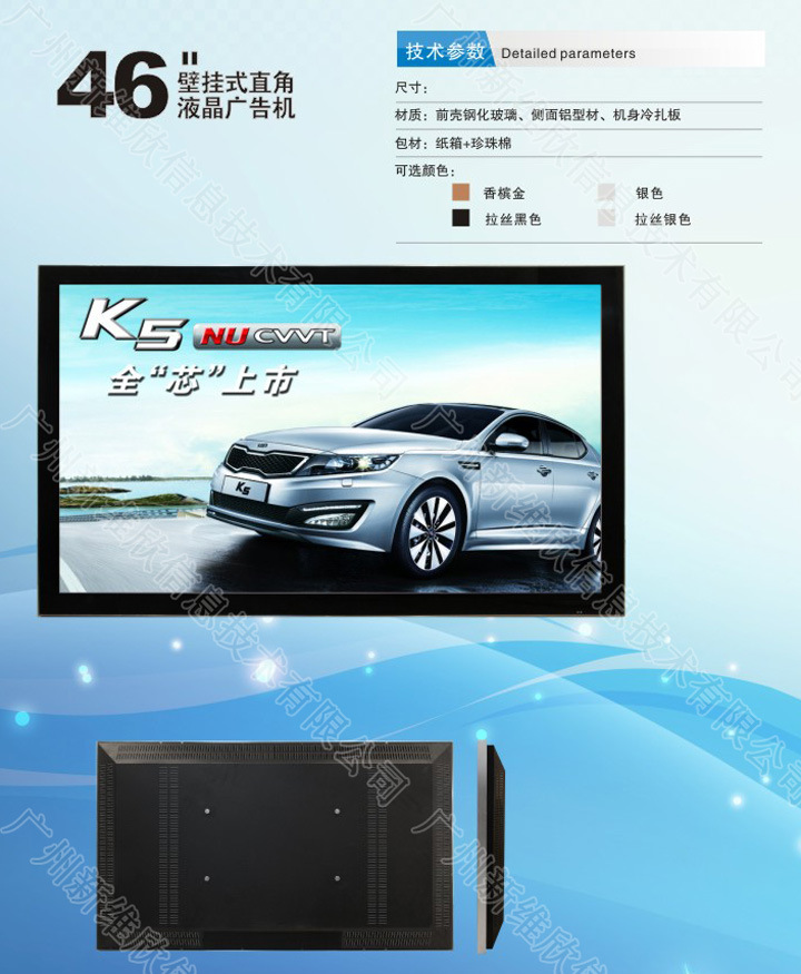 46寸广告机 壁挂直角版 高清液晶广告机 商场广告机 企业广告机