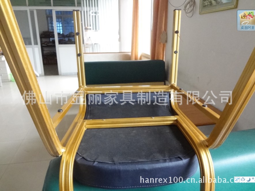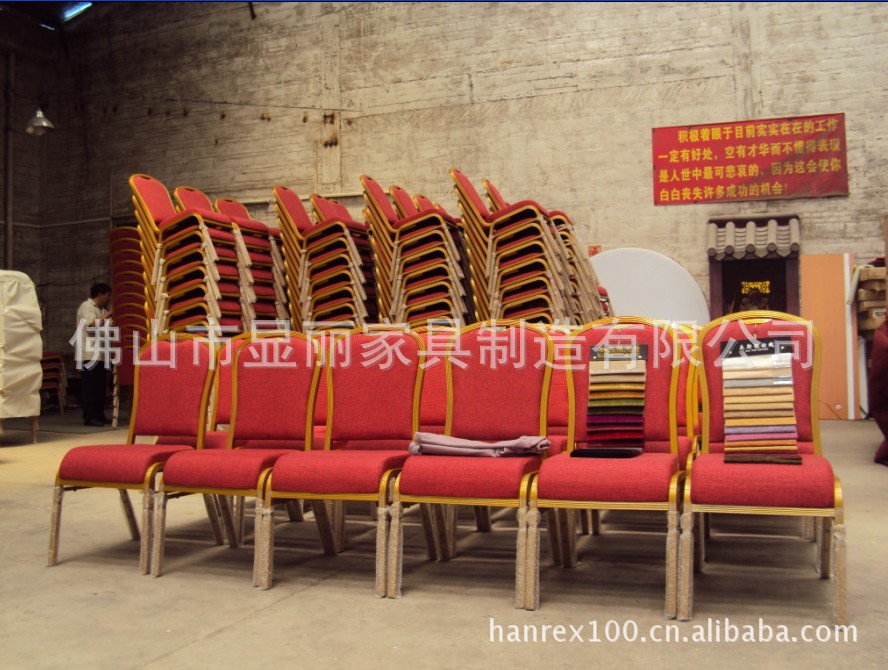 铝合金椅的规格: 框架由铝合金管而成,(25*25*1.8管,喷油漆后2.0MM管厚)构成,有许多管形选择,烤漆饰面,附着力及硬度符合国际标准;靠背由前后靠背锁而成,前靠夹10MM.后靠夹板8MM.外包布料有多种选择,座垫,由10MM夹板加高回弹定型PU海绵加外包布料构成,不易变形,椅脚,加橡胶垫,在任何地面均易推动,无噪音.本司所有宴会椅都按人体工程学原理,进行特别弧形设计,各部位紧包人体, 减少了人体在长时间坐姿下产生的疲劳.