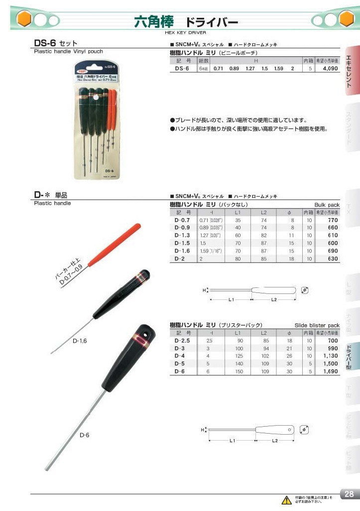 进口 日本百利 EIGHT内六角手批 D-0.9 八牌六角起子螺丝批 0.9mm