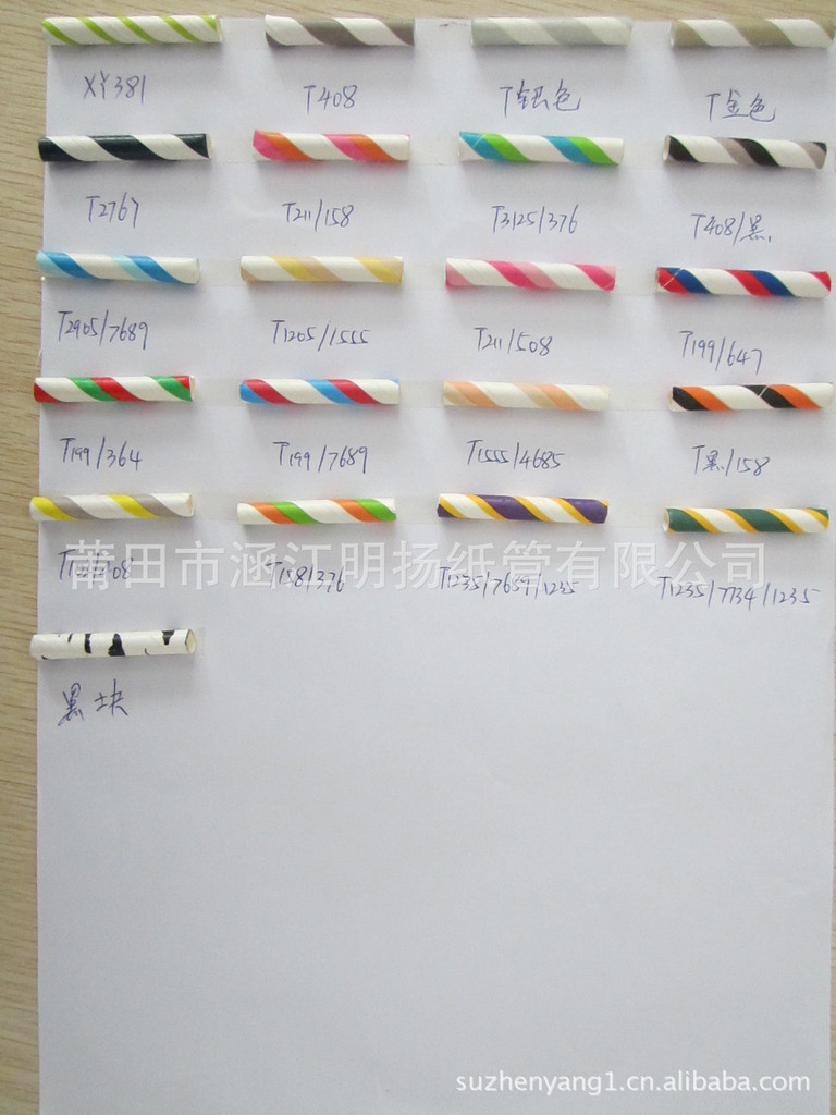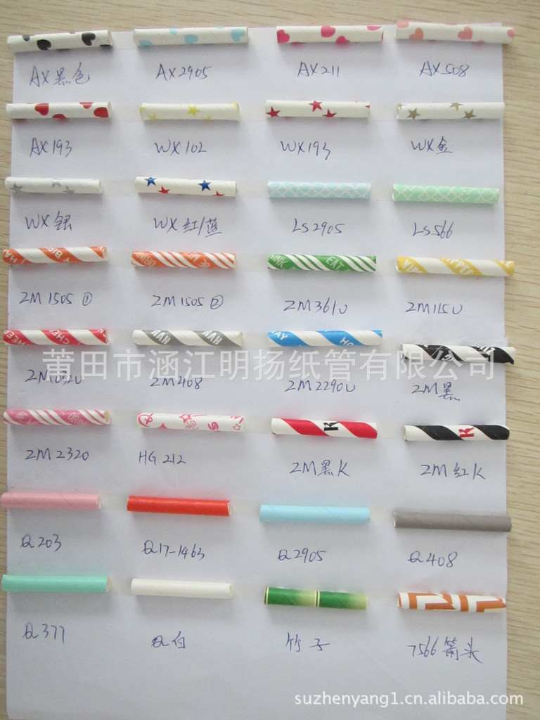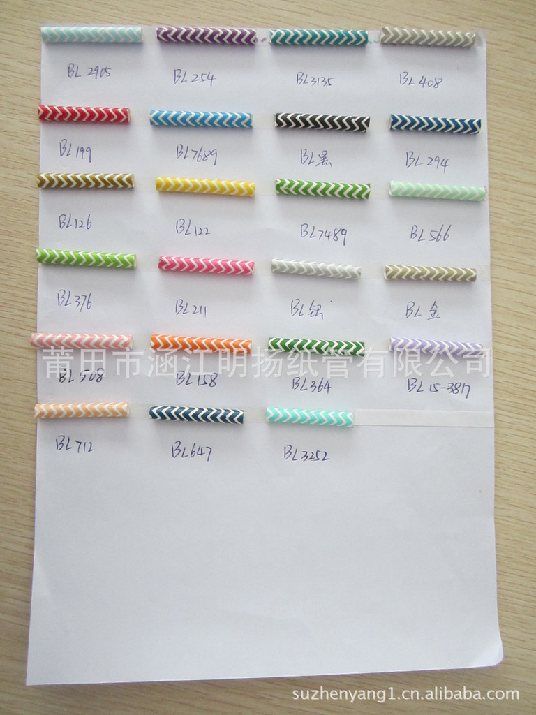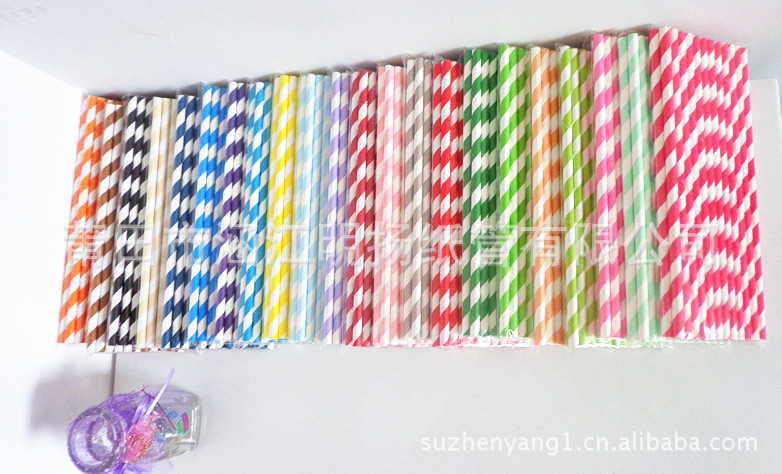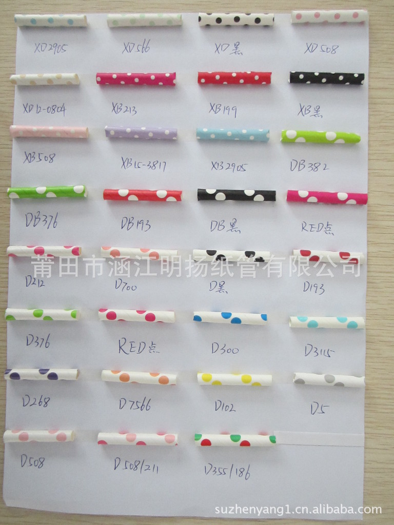 我们的产品:采用环保安全纸质,无异味,耐水性好,外观印刷精美档次高。产品通过FDA检测,和欧盟标准的检测。符合欧美国家对食品包装的卫生要求。使用后可降解。现成的图案有条纹、圆点、小圆点、细条纹、纯色、等100余种款式,也可以订制个性化图案,LOGO。常规规格:口径6mm长度197mm,也可根据客人定制规格生产。
