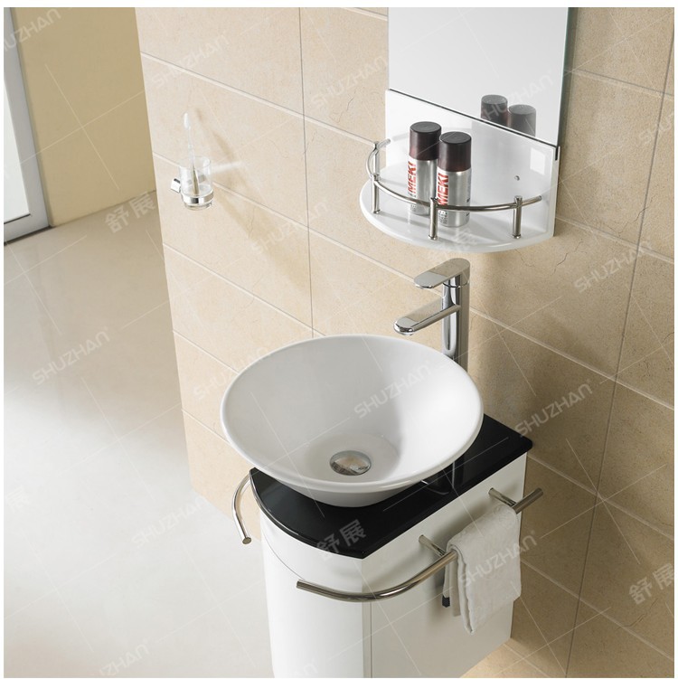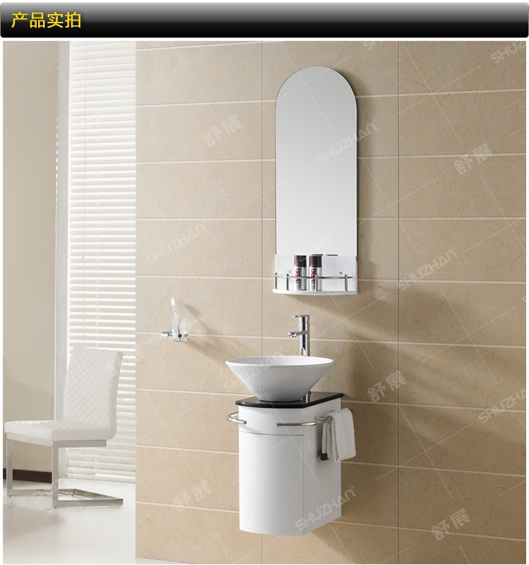 浴室柜保养:(一)轻放:在搬运浴室柜时,应轻抬轻放,不要硬拖硬拉;放置时,要放平放稳,若地面不平,将脚垫实,以防损坏榫眼结构;(二)防晒:浴室柜切勿放在阳光下暴晒,也不能放在过分干燥处,以防木料干裂变形;(三)清洁:清洁浴室柜可用一般清洁剂稀释后用软布湿润后再顺着木纹轻擦有污的地方;(四)水渍痕:如果浴室柜不小心有了水渍痕,要用湿布盖在痕印中,然后用熨头小心地按压湿布数次,痕印即可消失;(五)擦伤:浴室柜漆面擦伤,未触及漆下木质,可用同柜颜色一样的蜡笔或颜料,在柜的创伤面涂沫,一覆盖外露的底色,然后用透明的指甲油薄薄地涂上一层即可(六)经常用软布顺着木的纹理,为浴室柜去尘,去尘前,应在软布上沾点清洁剂(碧丽珠),不要用干布揩抹,以免擦伤,浴室柜在干燥的环境下使用时,需采用人工加湿措施,如:定期用软布沾水擦拭浴室柜;(七)浴室柜玻璃台面的保养:在使用时,切勿被尖硬物刻划,带色台面用中性清洁剂清洗;(八)浴室柜木台面的保养:在使用时,切勿用硬物重碰和刻划,用软棉布和一些家私清洁剂轻抹;(九)镜片的保养:浴室柜的镜片出现水渍痕的时,用软布和中性清洁剂清。运输说明*****************************************************
