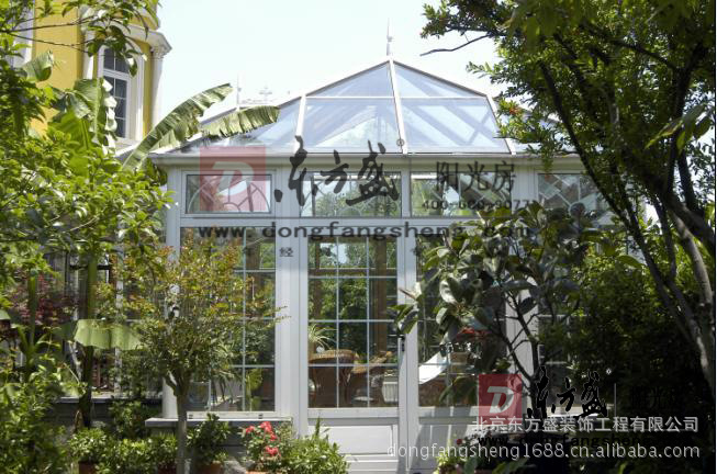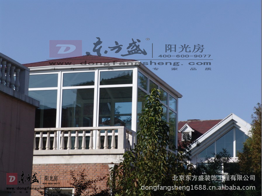 北京东方盛阳光房有限公司始创于1997年,一直凭借超前、独特的设计理念,严谨、务实的工作作风,完善可靠的质保体系,以及一批生气勃勃、专业扎实的技术研发队伍,多年来设计生产出了规格齐全、种类繁多的,彩钢顶阳光房,玻璃顶阳光房,断桥铝阳光房、钢结构阳光房和各种高档智能阳光房。 产品尺寸精度高、色泽明快、高雅亮丽、外观质量好。除此还具有显著的节能、保温、防噪音、不渗水、抗风压能力强,易保养、耐老化等特点。生产的阳光房全部按国家标准进行,选用优质型材,精心拼装加工而成,出厂前严格检验,只需您一个电话,免费上门测量、设计、安装。