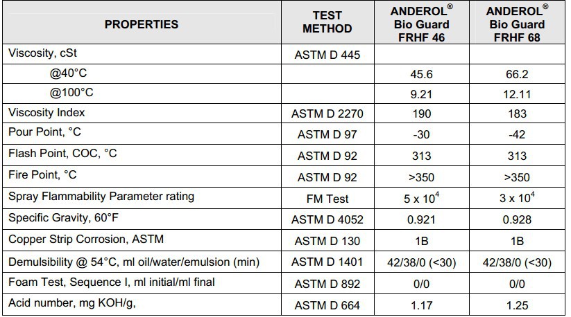BIO GUARD FRHF 46 AND 68 are synthetic polyolester-b ased hydraulic fluids specifically designed to meet