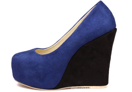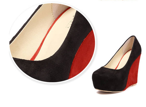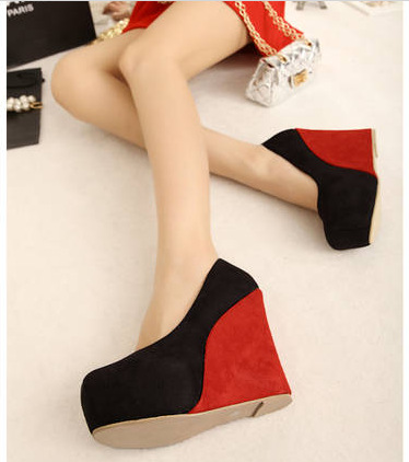 情侣花新款上市;拼色甜美;时尚坡跟防水台高跟单鞋;
