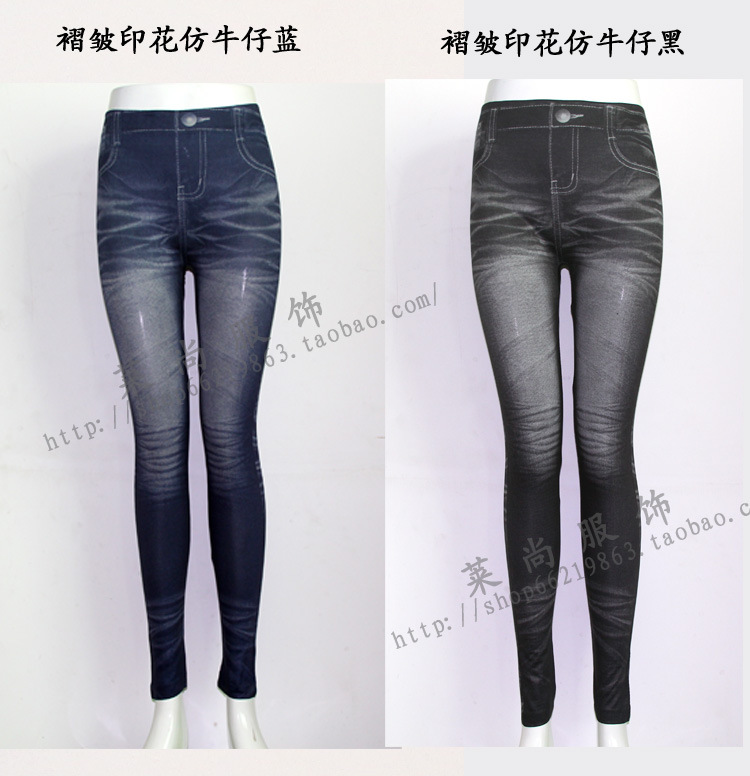 8105 批发韩版修身显瘦大码无缝蝴蝶印花仿牛仔打底裤女式九分裤