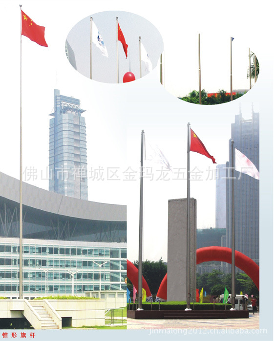 会馆旗杆制作旗杆的特点:优质不锈钢制造、旗杆锥度上升、挺拔壮观。内藏式不锈钢绳,旗杆外无旗绳,免去旗杆与旗绳碰撞产生的噪疸。国旗可面风360度自由施转、免去国旗缠绕在旗杆的可能。升旗、奏国歌可同步进行,国旗升到顶端、国歌奏完并可自动控制。根据升国旗时效要求,可电动、遥控、手拉升旗。旗杆的种类:◆ 电动旗杆1、通过电机及相关电器装置,用按钮中遥控器即可控制旗帜 的升降。2、电动旗杆配上自动奏乐及扩音装置,使电动旗杆的升旗的同时奏响国歌,更显出升旗时的庄重气氛,加上扩音装置后,则可在旗台上进行升旗后的报告或训话(适用于政府部门、学校、星级洒店、中外合资企业等)。◆ 风动旗杆风动旗杆厂家告诉你通过强劲的风泵及吹风装置、使旗帜在升降和旗帜定位的作用。◆ 外式旗杆通过旗绳、外滑轮及拉手,起到旗帜升降和旗帜定位的作用。◆ 顺风定位旗杆通过特制装置,使旗帜在风向任意变动下,不缠绕在旗杆上。◆ 内置式旗杆通过定制的手摇装置,控制旗帜的上下升降,而旗绳则隐藏在旗杆内部,不遭受风雨之苦。