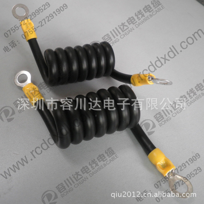 弹簧线(又叫弹弓线,螺旋线,伸缩线,曲线)是一种利用可伸缩性来工作的连接线。一般是由TPR/TPU/TPE/ PVC电缆绕制而成。而采用最多的是PU/TPU,PU/TPU是热塑性聚氨酯(TPU)弹性体,是无毒环保的高分子聚合物,具有其它塑料材料所无法比拟的强度高﹑韧性好﹑耐磨﹑耐寒﹑耐高温、耐油﹑耐水﹑耐老化﹑耐气候等特性,同时他具有高防水性透湿性﹑防风﹑防寒﹑抗菌﹑防霉﹑保暖﹑抗微生物、环保型柔性电缆、抗紫外线以及能量释放等许多优异的功能。