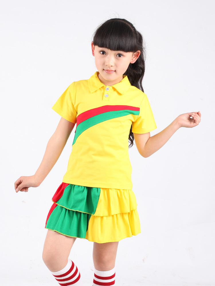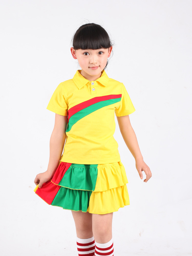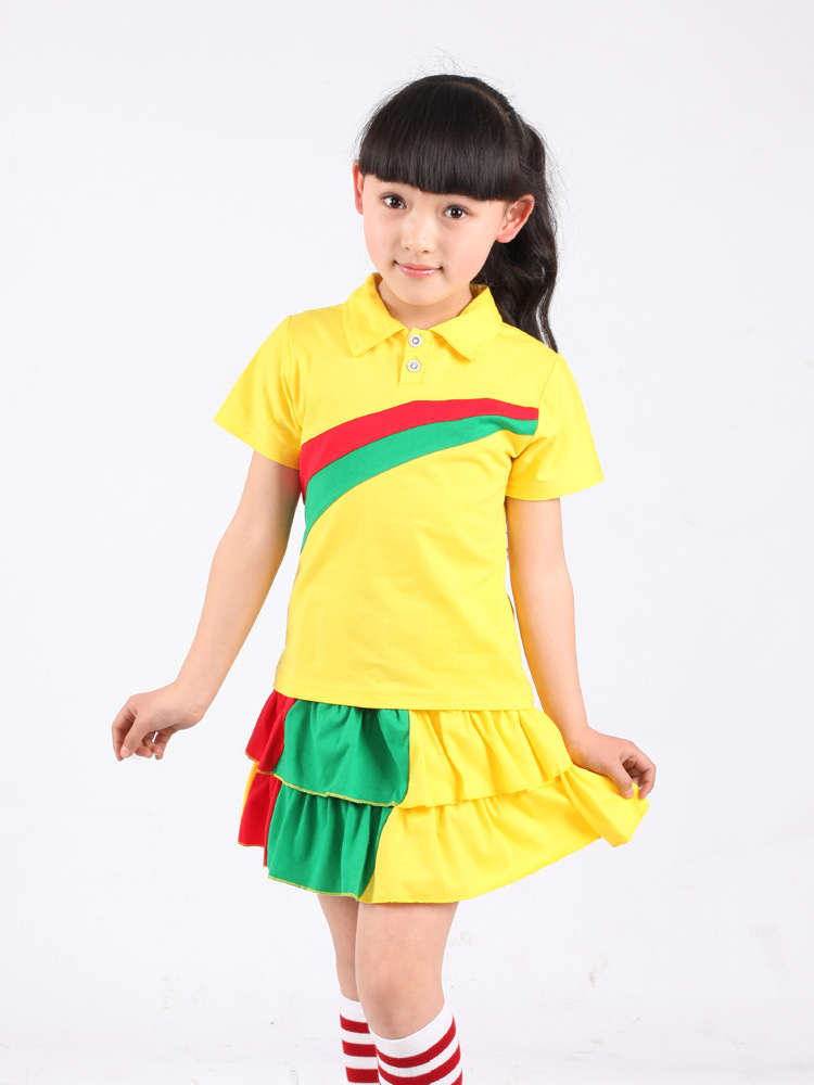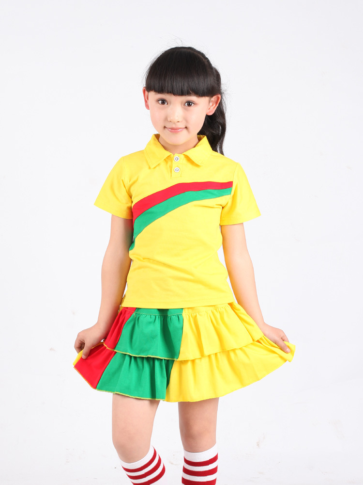 儿童校服夏季套装短袖短袖短裤黄色幼儿园服小学生校服表演舞台服
