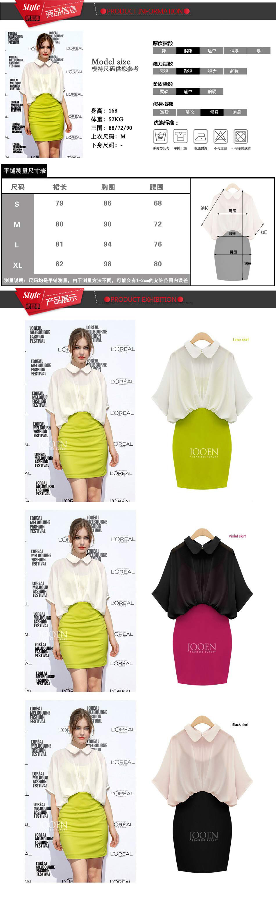 2013欧美女装新款连衣裙 假两件 撞色中袖修身显瘦雪纺短裙