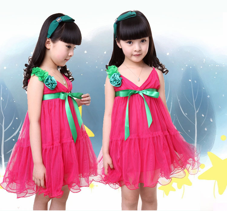 2013夏装新款 女童连衣裙夏装 玫瑰花儿童公主裙 女童裙子 纱裙