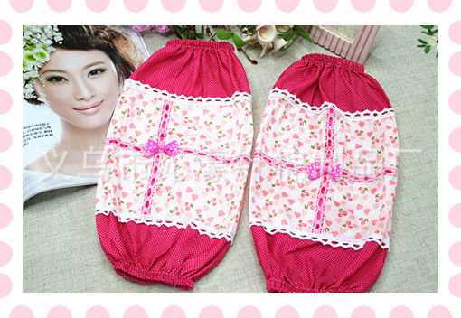 花边圆点印花三拼镶领结全棉布艺袖套,元旦疯狂促销