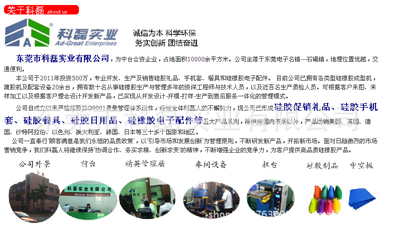 东莞市科磊实业有限公司是东莞市最大的硅胶类产品生产供应商。公司产品以定做为主,专业生产硅胶类产品,硅胶制品礼品等我公司均能生产。在有现货的情况下可以混批,无现货缺货请提前预定,我公司将在最短的时间内为您提供产品!期待您的光临!