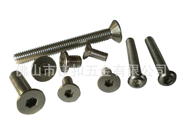 头型有:圆柱六内六角(DIN912)、半圆头内六角(ISO7380)、沉头内六角(DIN7991)、塞打螺钉(ISO7379)、无头内六角紧定螺钉(DIN913、DIN914、DIN915、DIN916)等,直径M1.6-M48,长度为2mm-500mm,公制、英制、美制均现货供应