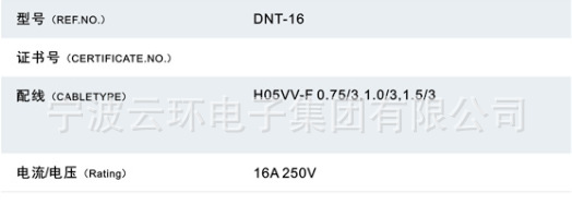 宁波云环电子集团有限公司创建于1985年,所属43家紧密层企业,二家高科技企业。现拥有固有资产2.2亿元。占地面积35万平方米,建筑面积25万平方米,员工2800人,专业生产电源线,橡胶线,插头,插座,线盘,灯具及小家电产品。公司从1989年起积极采用国家和国际标准组织生产,以获得国家CCC;美国UL,CUL;德国VDE,GS;英国的BSI;荷兰的KEMA;澳大利亚SAA等二十个国家的安全认证,并通过了ISO9001;2000质量管理体系认证,公司采用EPR管理系统。公司奉行以“优质拓市场,诚信赢顾客”的质量方针,立足国内,面向世界,产品畅销欧洲,美洲,澳洲,非洲,中东,南非等国家和地区。云环商标被认为浙江省著名商标。