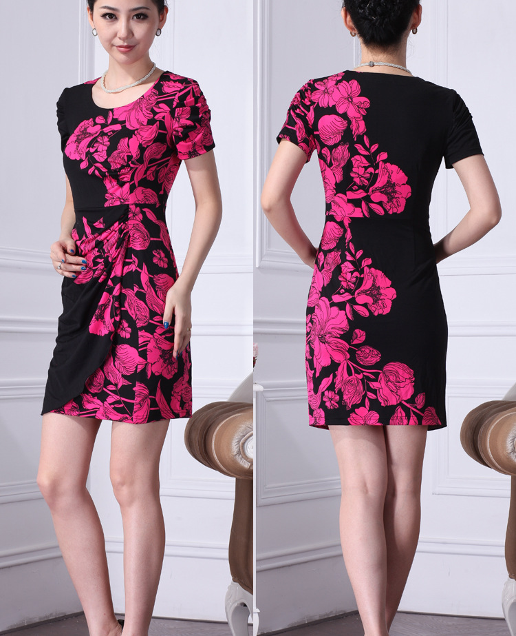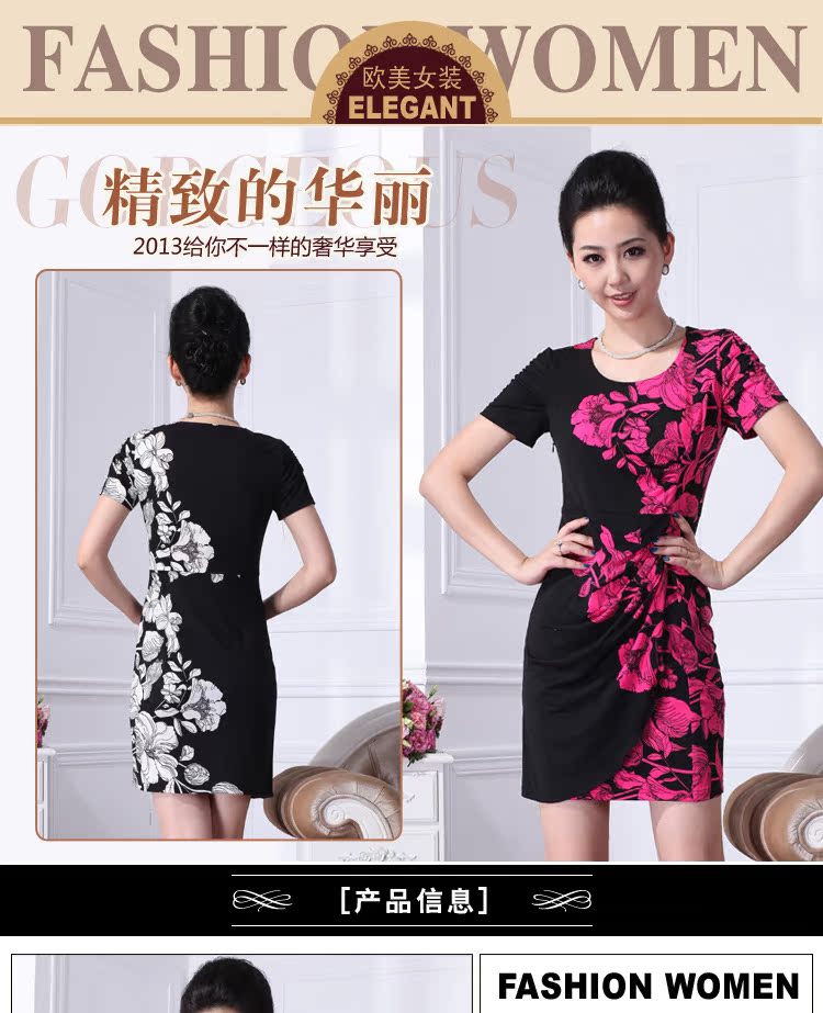 欧美品牌服装加盟2013夏装新款 典雅女装褶皱印花连衣裙一件代发