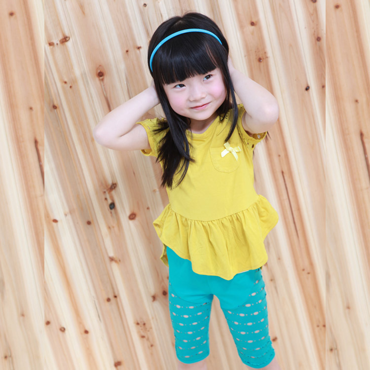 夏套装/2013夏短袖T恤七分裤/韩版童装/童装批发/青蛙套装