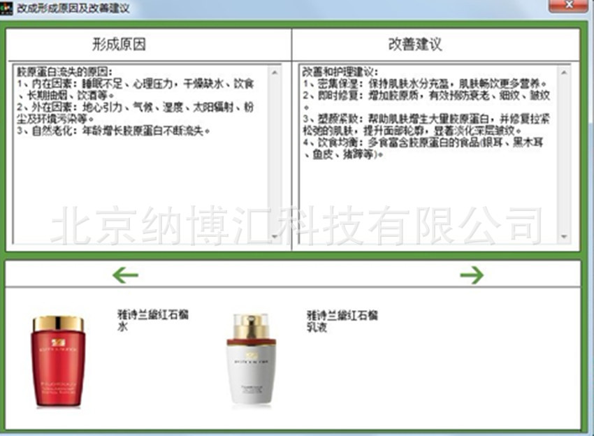 辅助美容顾问诊断出顾客的面部皮肤症状,自动匹配产品,并验证产品疗效。