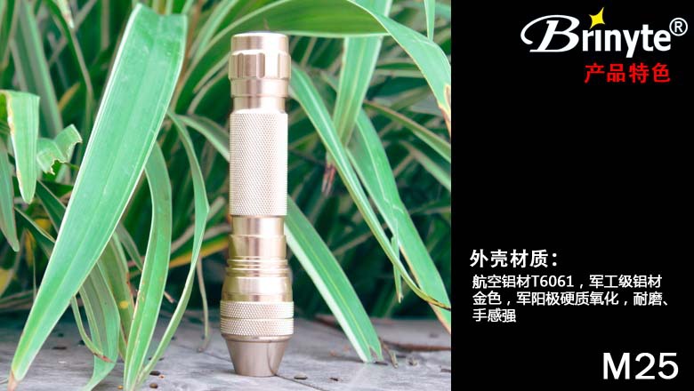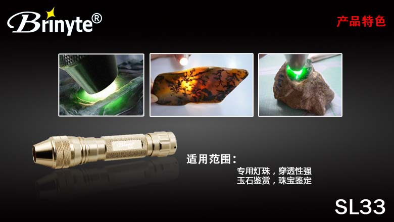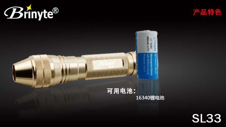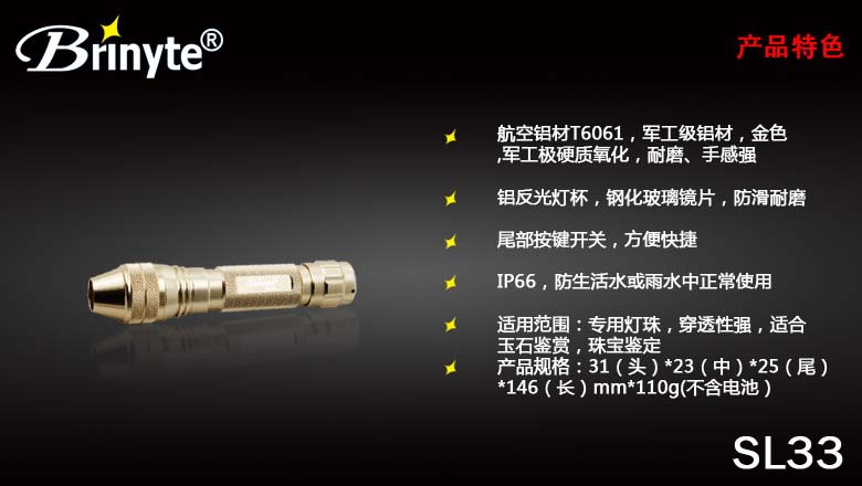 产品型号:Brinyte SL33金色 氙灯手电筒 氙气灯胆 黄光 玉石专用手电